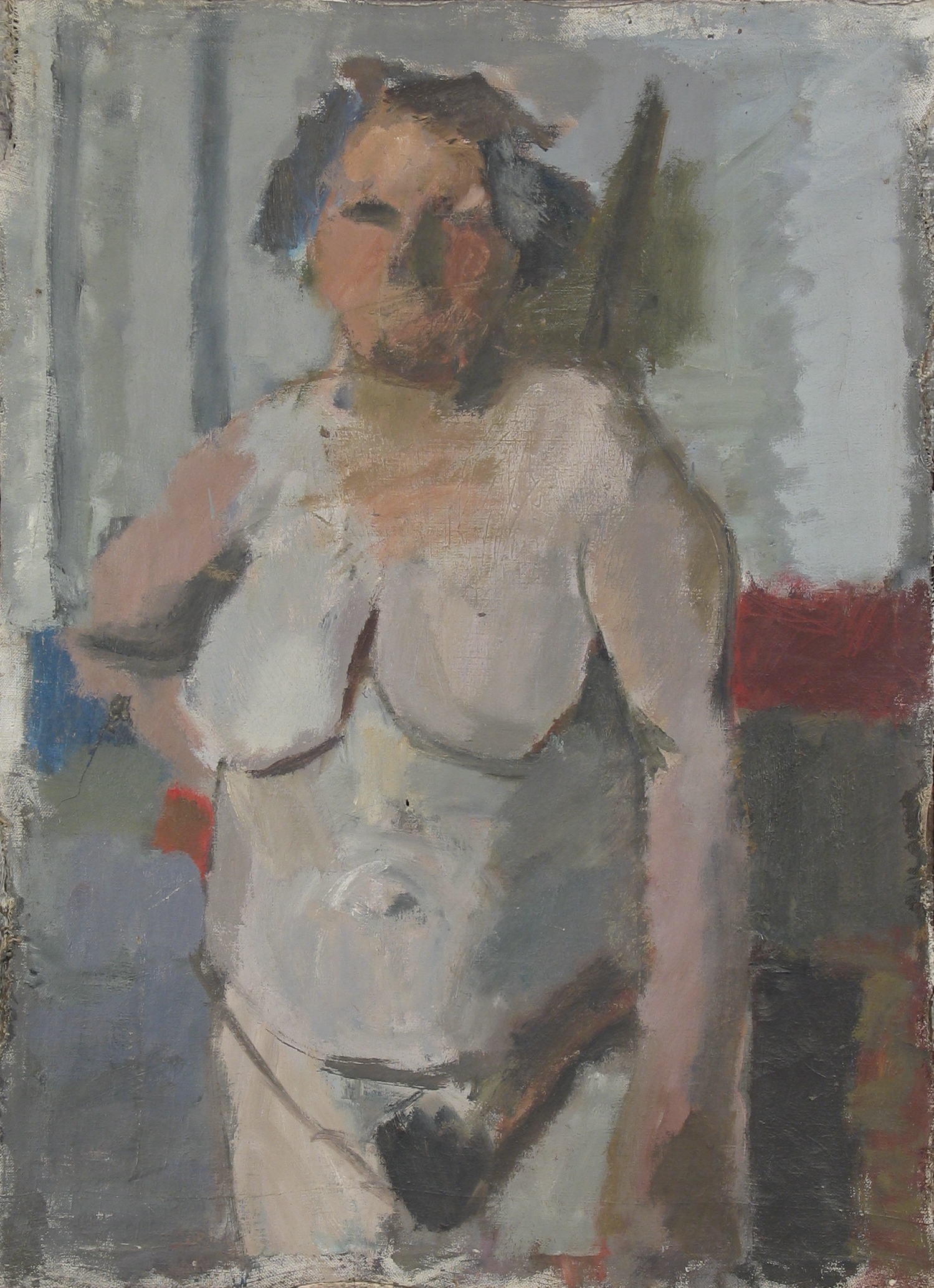 Elżbieta Strzałecka, „Akt”, praca studencka z pracowni prof. Artura Nachta-Samborskiego, olej na płótnie, lata 60. XX w., ok. 100 × 73.2 cm, Muzeum ASP w Warszawie, inw. MASP 2363.