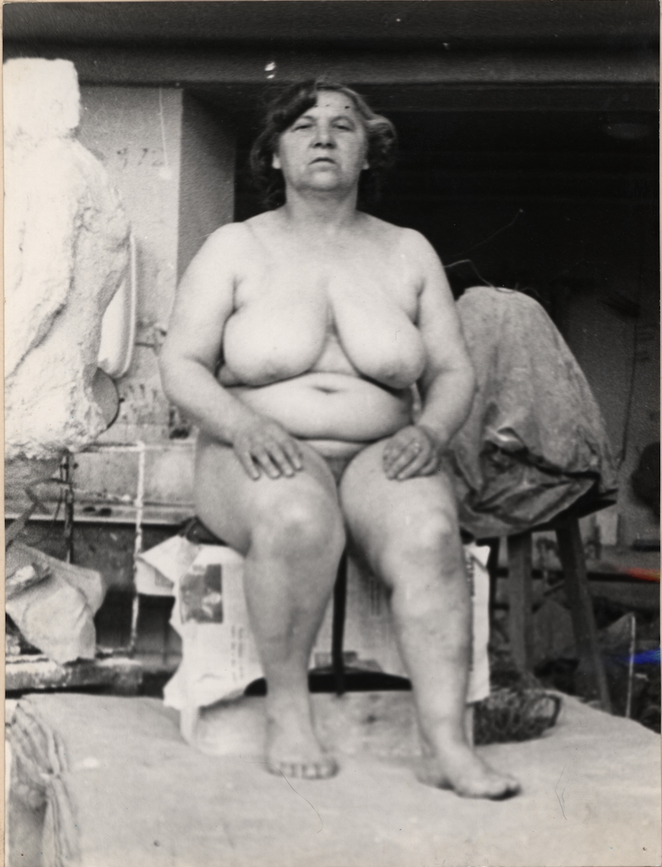 W fotografiach znajduje się jednak pewne zakłócenie, czy, sięgając do terminu Rolanda Barthesa, punctum46. Eufemia siedzi w pustej pracowni – nie widzimy studentów i studentek, których obecność warunkuje przecież jej pracę. Punctum odpowiada za dwoistość zdjęcia, przełamuje je, powoduje jego „ożywanie” pod spojrzeniem. Tak też dzieje się w przypadku tych fotografii. Pod wpływem łatwego do przeoczenia, a przecież oczywistego braku pomieszczenie nabiera widmowego charakteru, a nagość modelki, nieuzasadniona obecnością młodych artystów, wzbudza niepokój. Wytwarza się napięcie między sferą publiczną a intymną i niejasnym jest, do której należy przypisać nagie ciało Eufemii.