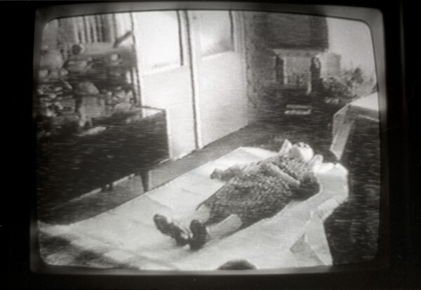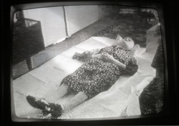 Trup babki to ostatnia z serii prac fotograficzno-filmowych, które Libera poświęcił schorowanej Reginie G.76. Najbardziej spośród nich znana – film Obrzędy intymne (1984) – doczekała się wielu analiz, także w kontekście etyczności ukazywania cierpienia77. Zdjęcia martwej Reginy nastręczają podobnych wątpliwości, choć znajdują się w pewnym zawieszeniu. Film był właściwym medium do ukazania procesualności cierpienia i performatywności opieki. Jak jednak wynika z powyższej wypowiedzi, Libera nie mógł sprostać wyjątkowości i głębi agonii – samego umierania. O momencie samej śmierci Reginy Marta Hekelsman pisze jako o quasi-sacrum – punkcie „wyjęty[m] poza możliwość oglądu”78. Agonii należy doświadczyć bez zapośredniczenia. Nie nadaje się ona też do upublicznienia. Ten moment nie został więc uwieczniony. Wszystkie dylematy moralne związane z Obrzędami intymnymi dotyczyły żywej osoby i braku jej świadomej zgody na bycie nagrywaną. Trup babki ukazuje jednak martwe ciało, którego ontologiczny status stanowi dla nas wyzwanie: czy to jeszcze-człowiek (utożsamiany z aktywnością) czy już-rzecz (pasywność)79? To rozedrganie daje się dostrzec w samej formie zdjęć i technice ich wykonania80: w otaczającej każde z nich ramie telewizora oraz w podobieństwie pomiędzy pierwszym a trzecim ujęciem – zawężeniu kadru, które przywodzi na myśl najazd kamery. Mimo że z konieczności statyczne, zdjęcia martwej Reginy nie są wolne od filmowej procesualności, jednak zachowują ją w mocno ograniczonej formie – tak jakby niejednoznaczność zwłok domagała się niejednoznaczności w ich ujęciu. Jakby niezgoda na śmierć zamanifestowała się w niezgodzie na zupełną statykę zdjęć.