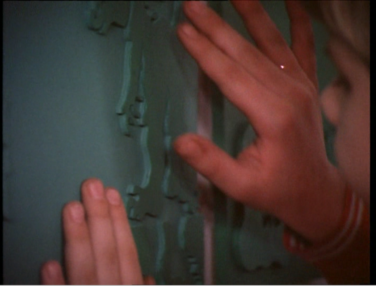 W tym kontekście Wernisaż pozostaje wyjątkową realizacją, choć nie był to jedyny film uwzględniający percepcję dotykową. W słynnym filmie Abakany (1970) Kazimierza Muchy kamera prowadzi wzrok widzów po fakturze materii rzeźbiarskiej prac Magdaleny Abakanowicz. W następujących po sobie bliskich kadrach „dotyk realizowany jest sukcesywnie, w sposób znamienny dla tego zmysłu i odmienny od natychmiastowej syntezy dostępnej dla oka”41. Wprowadzona w Abakanach projekcja widzenia haptycznego – by odnieść się do pojęcia Aloisa Riegla – która konstytuuje alternatywę dla hegemonii wzrokocentryzmu, de facto nie wykracza jednak poza władzę oka. Tymczasem bezprecedensowość Wernisażu polega na ukazaniu modelu percepcji dzieła uwolnionego od oka i potencjalnie rekonfigurującego pole odbiorców sztuki.
